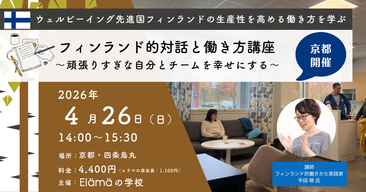 今回もエラマプロジェクトさんとのコラボで、京都以外でも、フィンランドや生き方に関するいろいろな講座が開催されます。